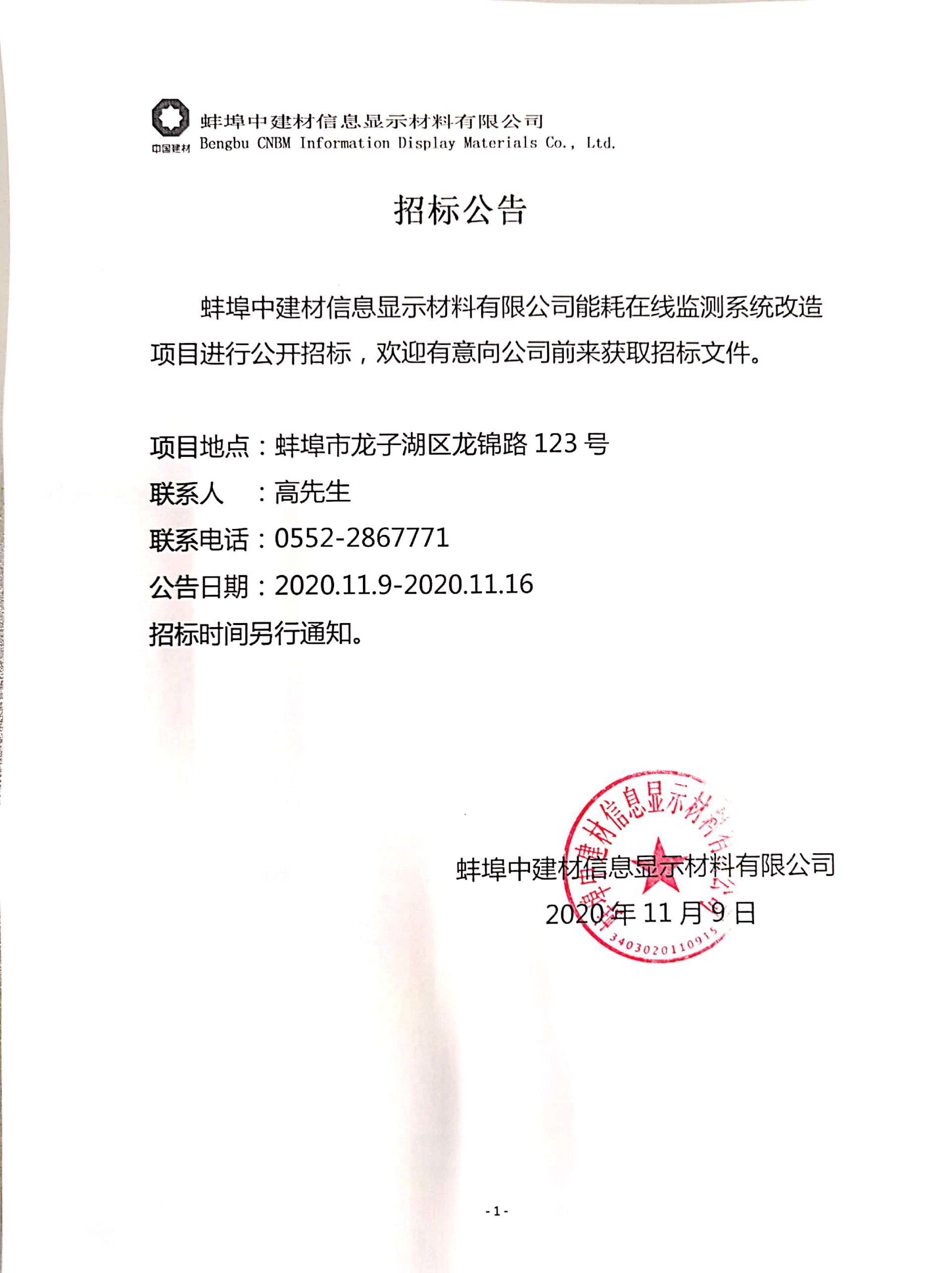 蚌埠中建材信息显示材料有限公司能耗在线监测系统改造项目招标公告