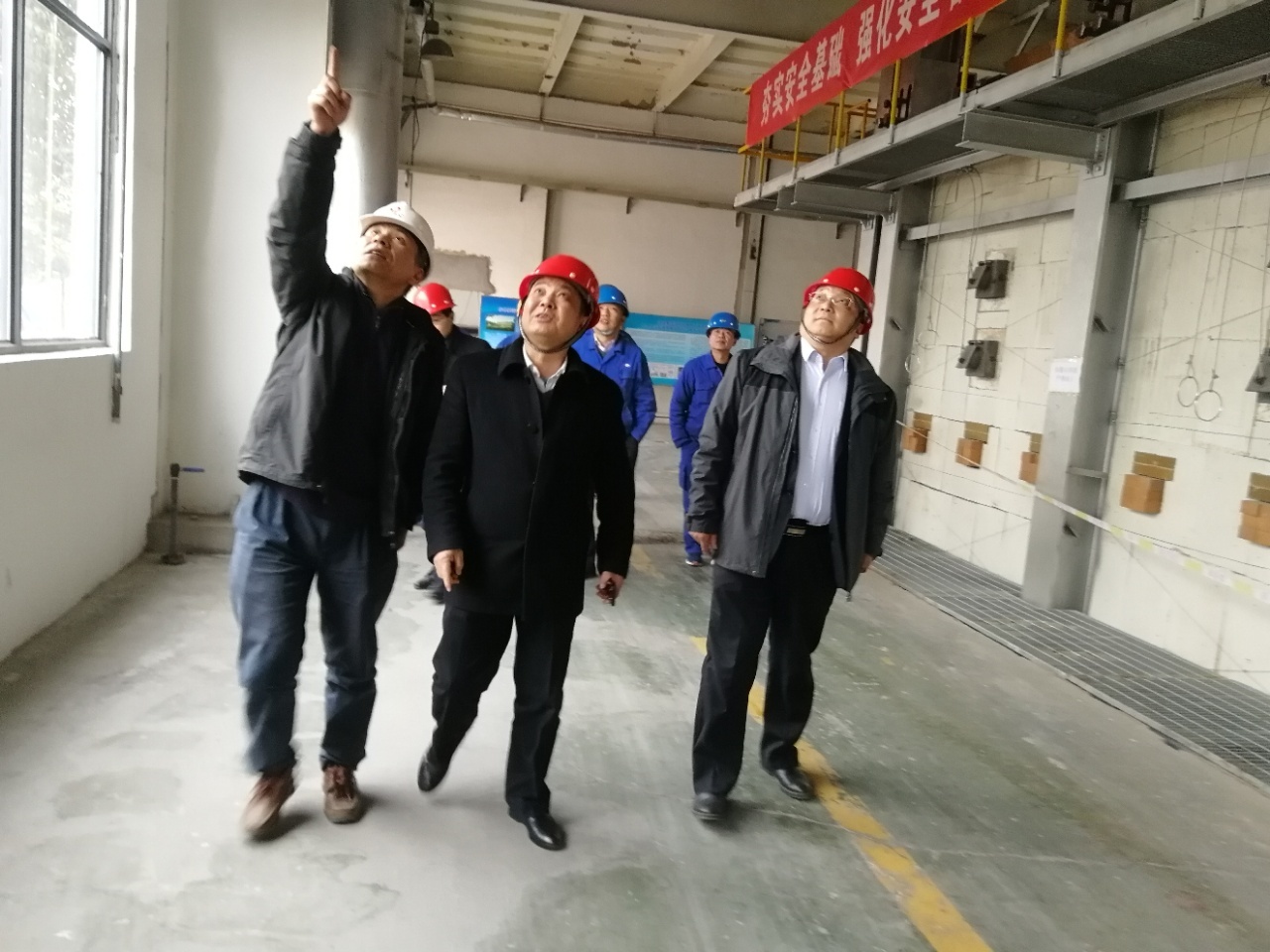 在施工作业现场,张冲董事长深入到一个个施工作业点察看;每走到一个作业点检查,他都仔细询问工程进展情况、设备安装情况或作业计划,程玉东经理、王国强书记分别予以详细地汇报。在公司生产调度室内的座谈会上,张冲董事长发表重要讲话,他强调目前要做好五个方面的工作。即:一、依据既定的具备点火条件的时间节点,认真梳理剩余项目的工作任务,要制定完成任务的工作规划,加班加点,在保证工程项目质量的前提下加快施工进度。二、认真做好生产前的各项准备工作,诸如:原料、锡锭、天然气以及工器具等的市场考察、调研及购置工作。同时,要做好设备调试,做好产品定位,坚持创新驱动,力争使产品质量达到先进水平。三、强化企业管理,转变员工观念,扎实推进员工岗前应知应会知识的集中培训。四、工程项目建设中的安全管理工作要常抓不懈。五、厂区绿化工作、办公楼改造工作,也要加快进度等。
