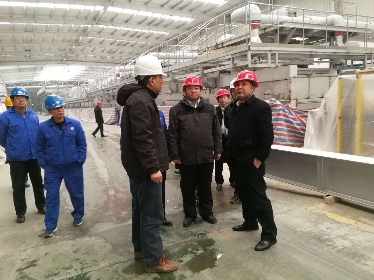 2月26日,洛玻股份公司董事长张冲,在中国建材国际工程公司龙海玻璃项目经理程玉东、洛玻股份公司总经理马炎、党委书记王国强、综合管理部总经理王炳文等的陪同下,深入龙海玻璃工程项目建设施工作业现场检查指导工作。